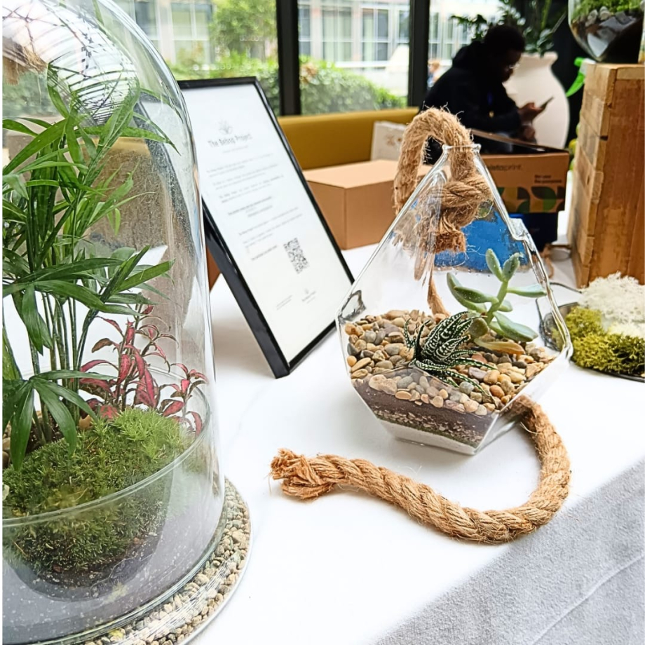 Rodrigues vous initiera à la réalisation de votre terrarium ou à la conception d'un tableau en végétaux stabilisés.