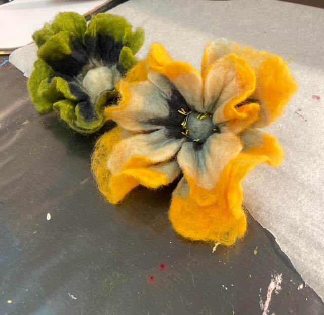 Julia vous proposera de faire de la laine feutrée en réalisant une broche fleur ou un petit porte-monnaie