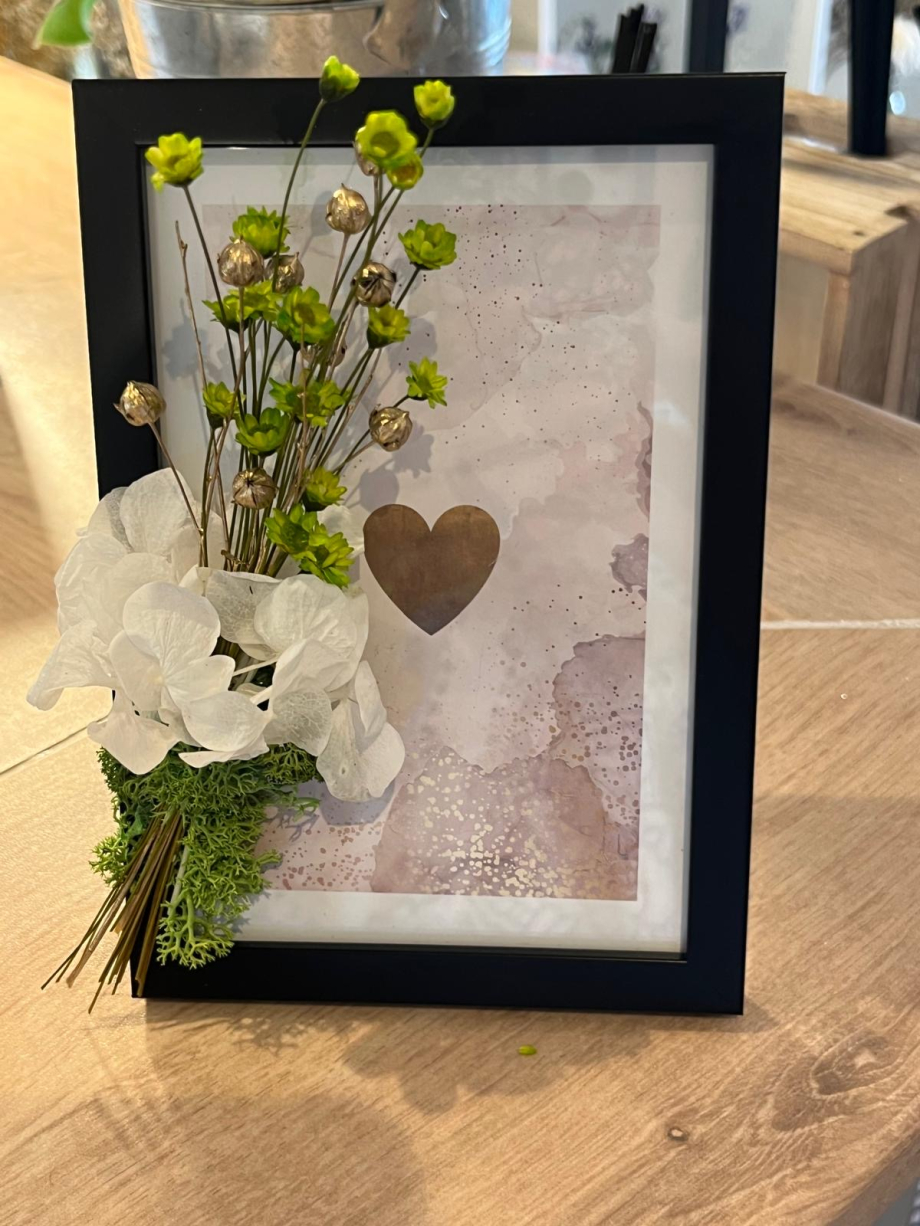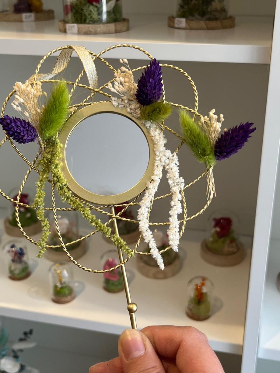 Avec Véronique vous allez pouvoir travailler les fleurs sécher et faire des marque-pages, des miroirs ou des cadres comme ceux là.